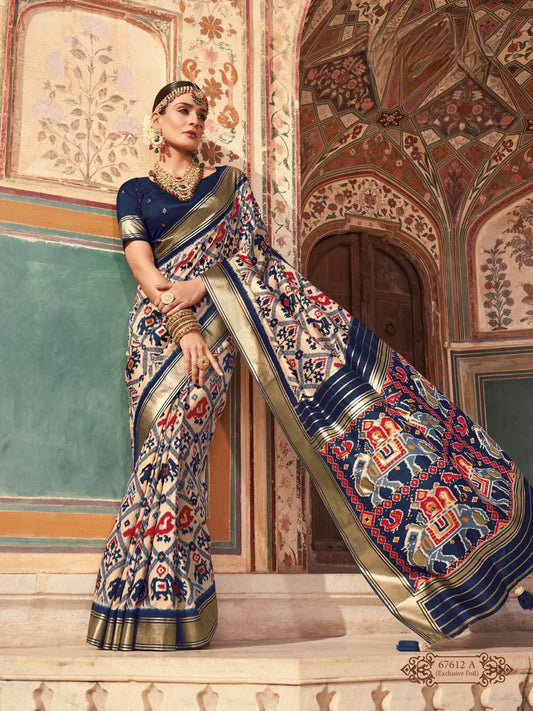 White And Red Patola Silk Saree